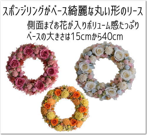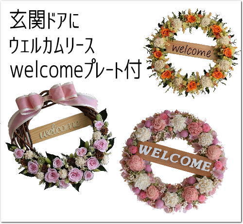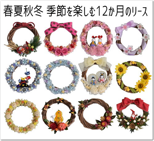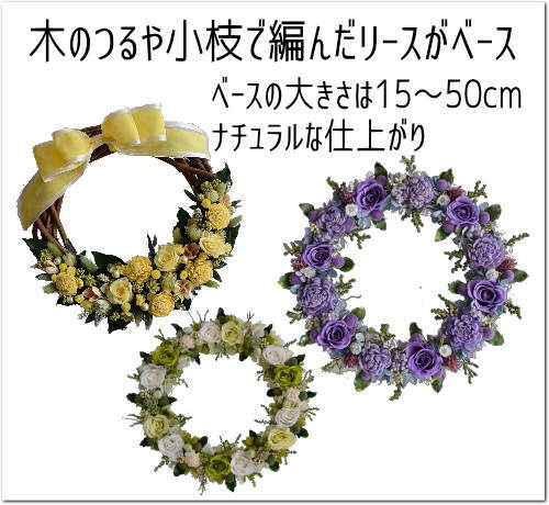 春夏秋冬、四季折々のプリザーブドフラワーリース・ドライフラワーリースを玄関ドアやお店の入り口、お部屋の中に飾りませんか。