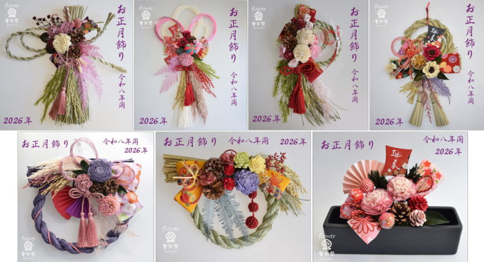 2026年、令和8年用のお正月リース、お正月アレンジメント 販売中です。