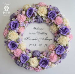 ウェルカムリース プリザーブドフラワー 紫色のバラ 白とピンクのソーラーフラワー ウエディング ギフト プレゼント 結婚祝い(27cm) WW25G ww25g ギフト包装-g 選択してください 自宅用 無料ギフト包装 無料ギフト包装+有料手提げ袋(+150円) 有料箱入りギフト包装(+400円) 有料箱入りギフト包装+手提げ袋(+550円) 在庫状態 : 在庫有り ¥15,500(税込) 数量 詳細 27cm<ベース スポンジ 25cm> ラベンダー色のバラ、白とピンクのソーラーフラワー、小花いっぱい、プリザーブドフラワーのウェルカムリース。 落ち着いた優しい色合いです。 プレートにお入れする文字は、サンプルを参考に備考欄にご記入ください。 サンプル以外の文もOKでご希望の書体がある場合はお知らせください。 商品レビュー ログインする ログインしてレビューを書く事ができます。 関連商品 結婚式のウェルカムリース プリザーブドフラワー 紫とピンクのバラ(27cm) ¥18,000(税込) ウェルカムリース 結婚式 淡いピンクのバラはプリザーブドフラワー ウエディング(27cm) ¥15,500(税込)